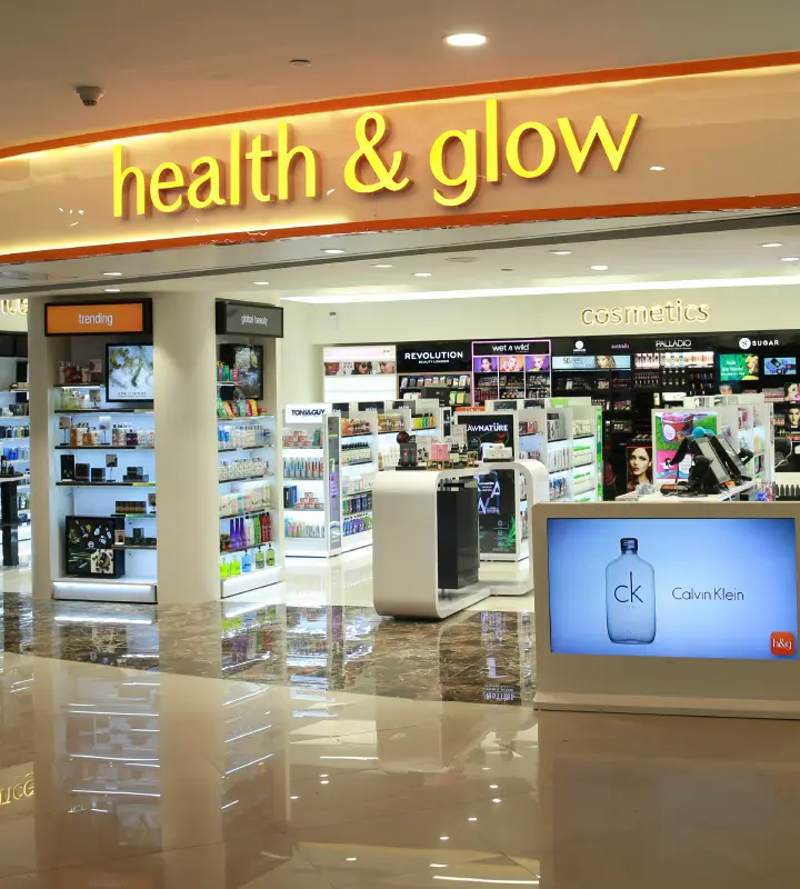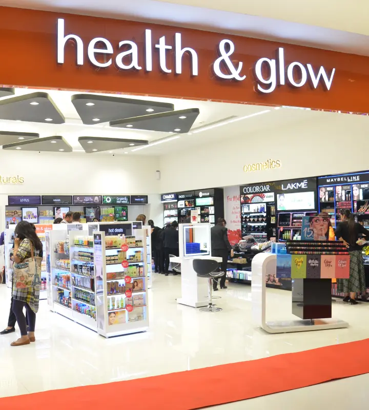 With a network of over 170+ stores across Bengaluru, Chennai, Hyderabad, Cochin, Mumbai, Pune, Kolkata, Bhubaneswar, Mangalore, Manipal and Coimbatore, we are one of the leading cosmetics and personal care products retailer in the country. We are also available online on the Health & Glow app and website.